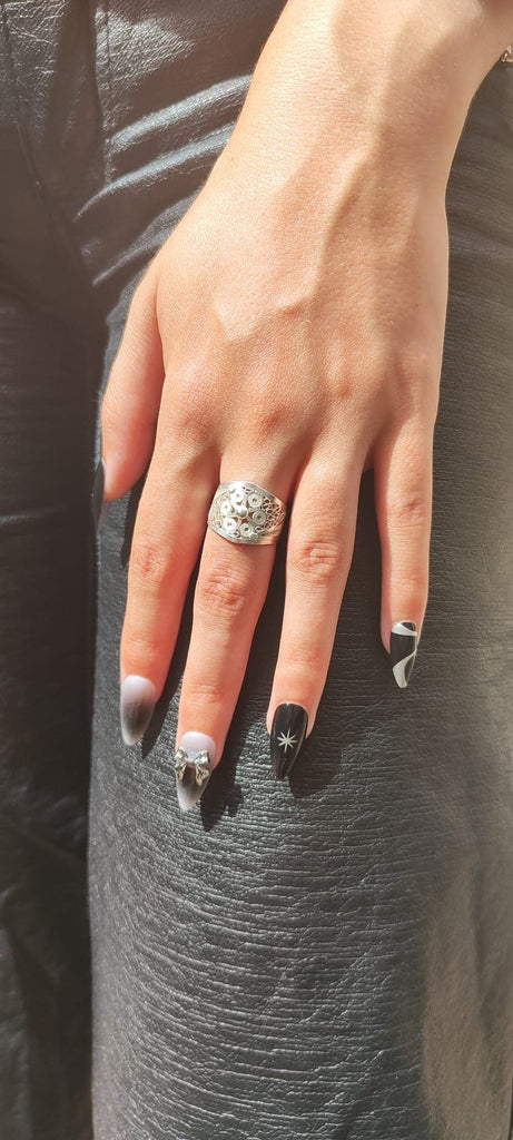 UNE BAGUE ETHNIQUE AU DESIGN SIMPLE POUR UN STYLE ÉLÉGANT ET FRAIS. UN BIJOU EN ARGENT ARTISANALE IDÉALE POUR LES FEMMES ORIGINALES ET SOBRES À LA FOIS.